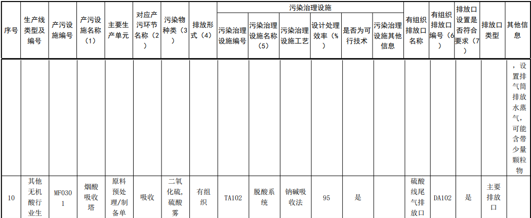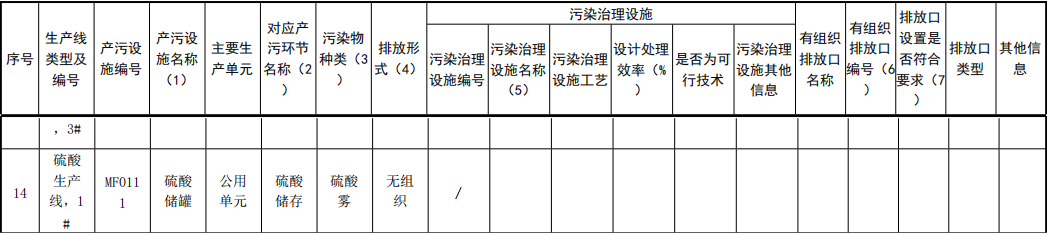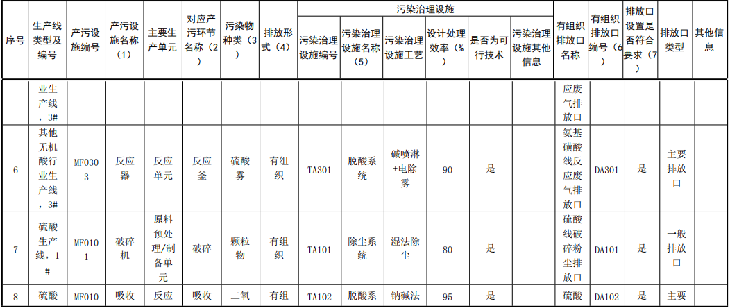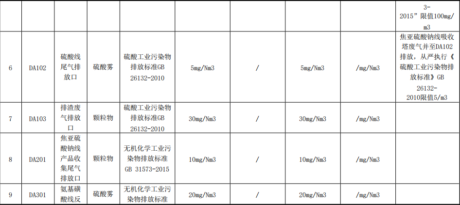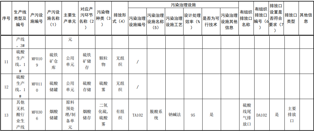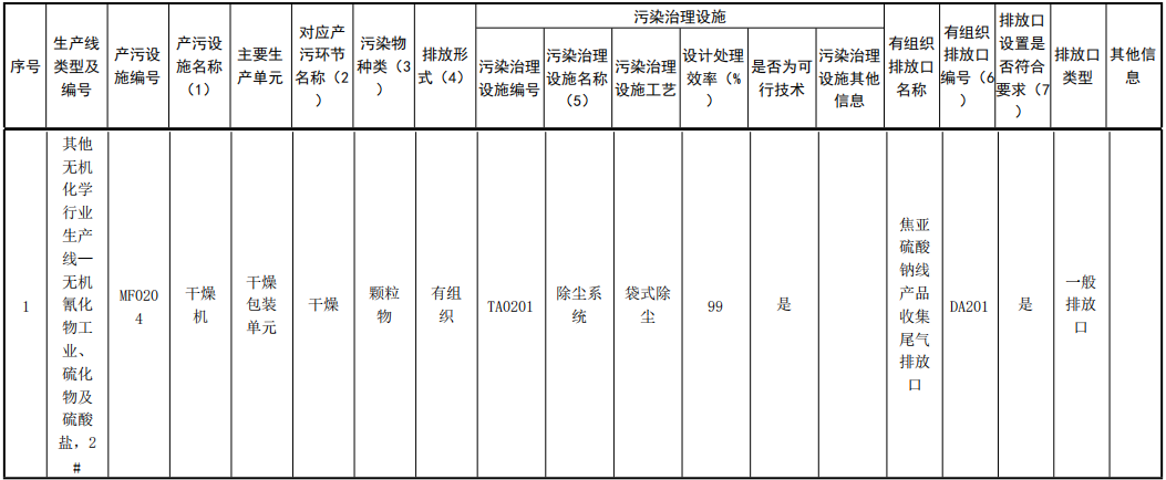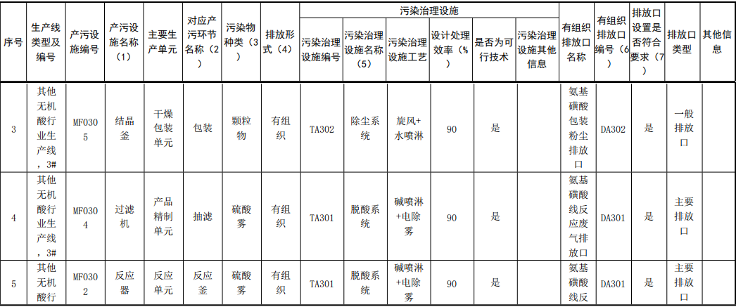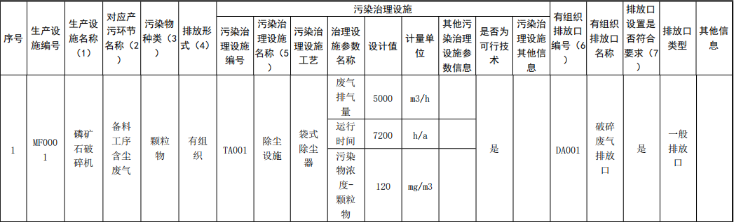 湖北龙祥磷化有限公司环境信息公示 湖北龙祥磷化有限公司,现有10万吨/年过磷酸钙生产线、20万吨硫铁矿制酸生产线、2万吨/年氨基磺酸生产线(试生产阶段)各一条(焦亚硫酸钠生产线建成未生产),公司统一社会信用代码:91420684726129188X,排污许可证编号:91420684726129188X001Q,公司2022年主要污染物为:颗粒物、二氧化硫、其他特种污染物(硫酸雾、氟化物,氨(氨气))、COD、氨氮其他特征污染物(硫化物,氟化物(以F-计),总砷,总铅,总氮(以N计),总磷以(以P计),PH值,悬浮物)。公司自建成以来秉承着环保大于一切的理念,严格遵守国家相关法律法规,主动增强、改善相关环保治理与预防设施,未发生超标排放情况。现将公司主要污染物的名称、排放方式、排放浓度和总量,以及防治污染设施的建设和运行情况,危废相关信息公示如下: